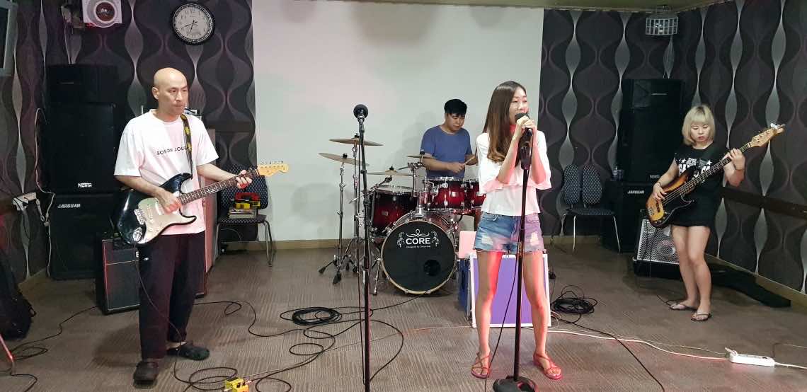 저희 펜션노래방에서 벤드공연 열창중입니다.